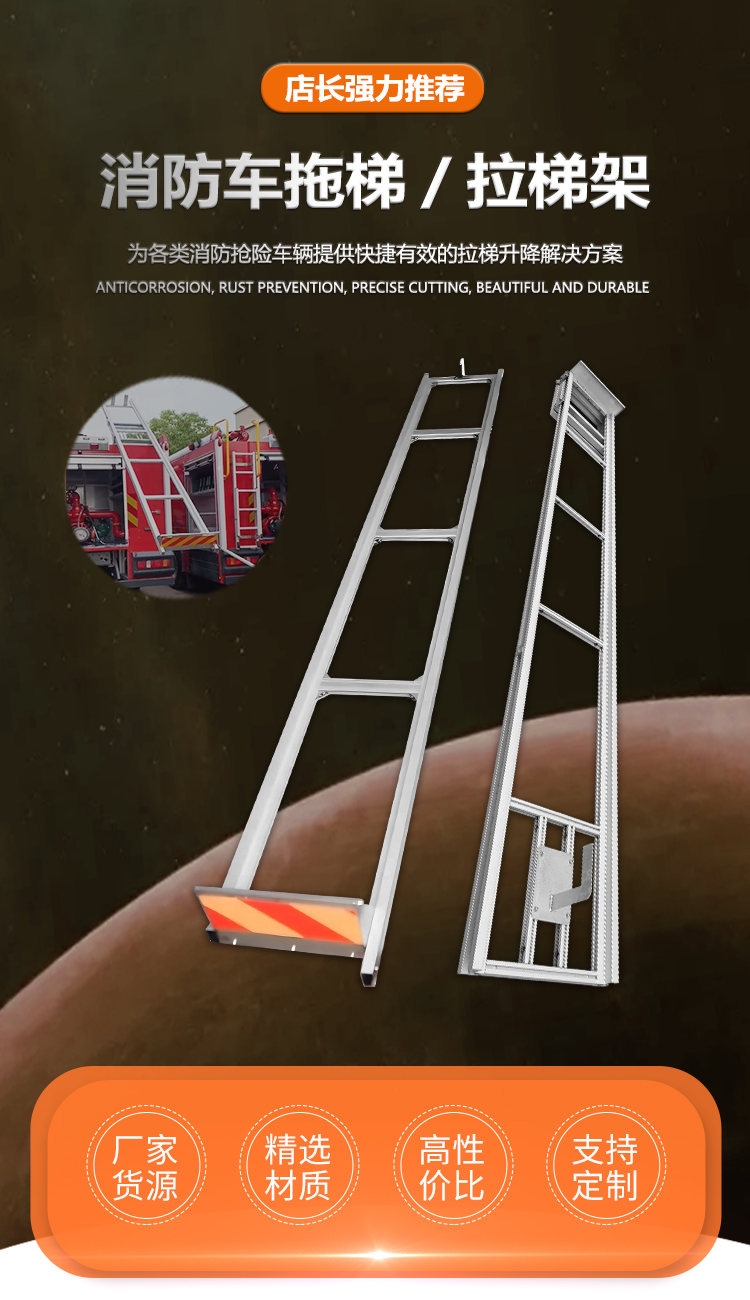 消防车配件铝合金后爬梯尾部折叠挂梯车厢铝制伸拉梯不锈钢伸缩梯