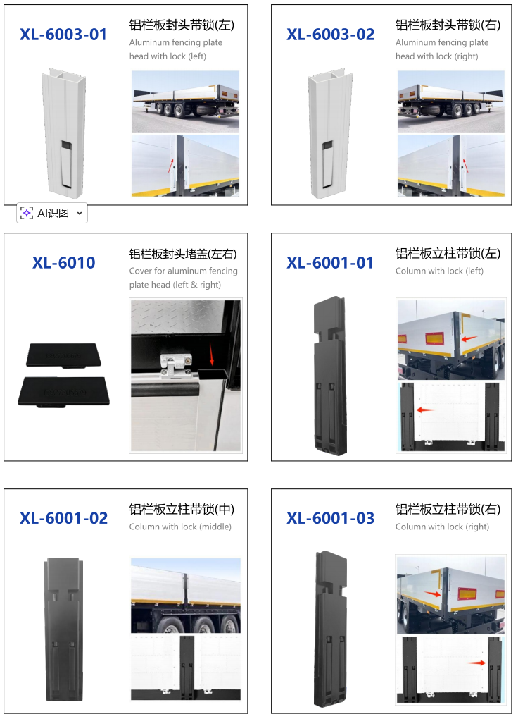 栏板车配件铝栏板铝封头铝栏板封头带锁铝栏板立柱带锁堵盖型材