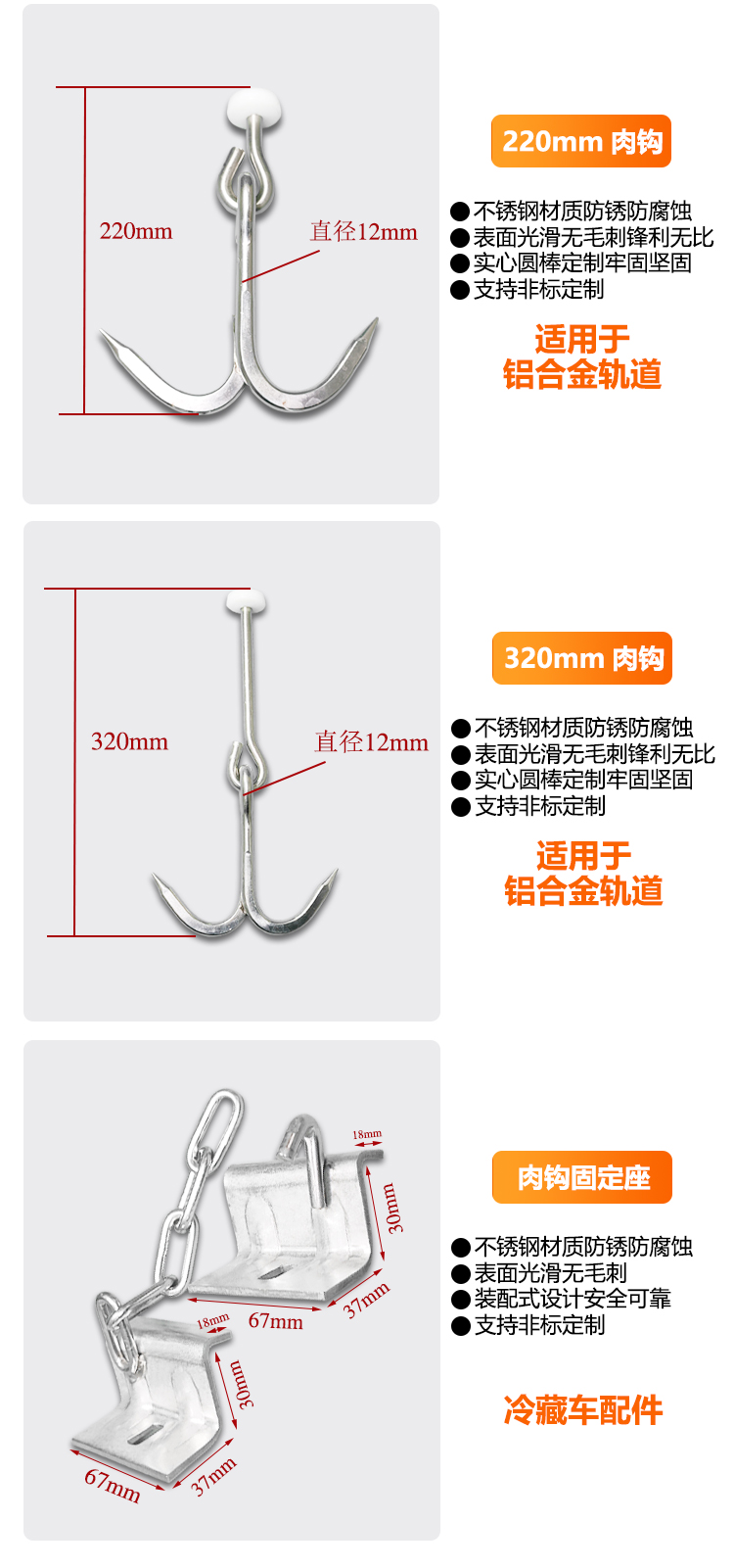 冷藏车猪肉钩不锈钢车厢肉钩双挂肉勾子改装冷藏车冷链挂猪双钩子